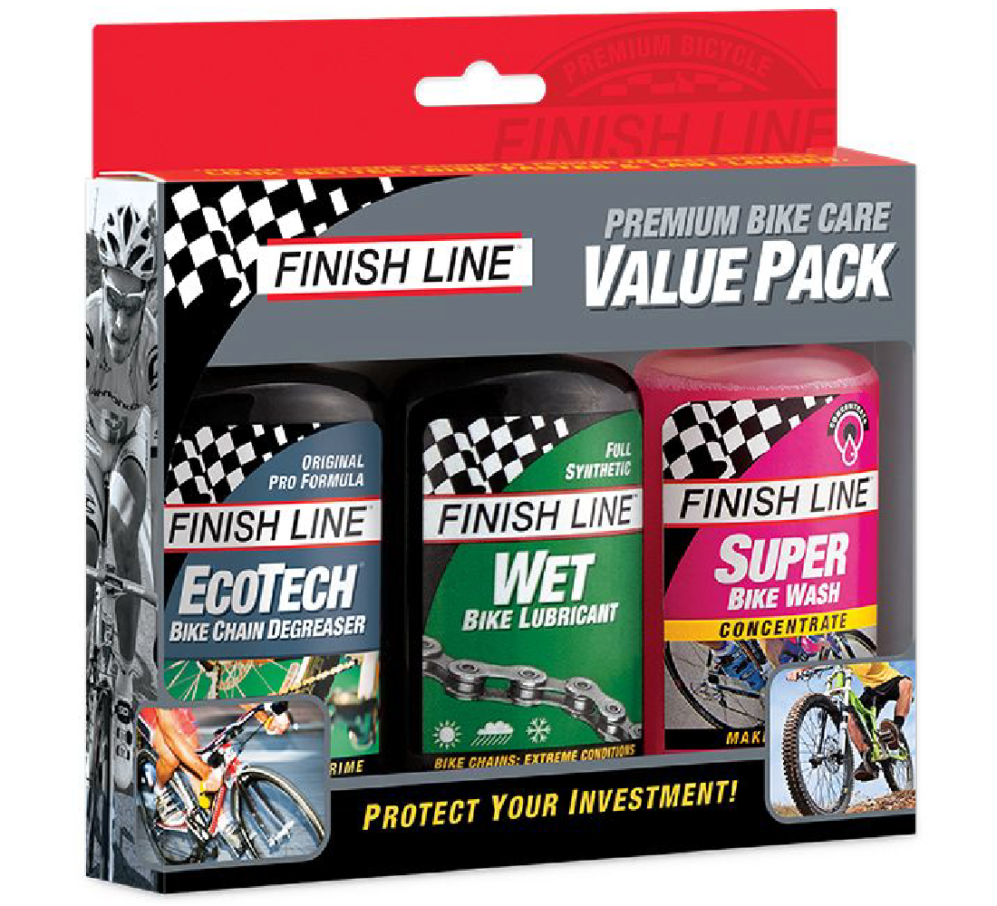 KIT PREMIUM: DESENGRASANTE Y LIMPIADOR ECO-TECH + LUBRICANTE WET+ LIMPIA BICICLETAS SUPER FINISH LINE